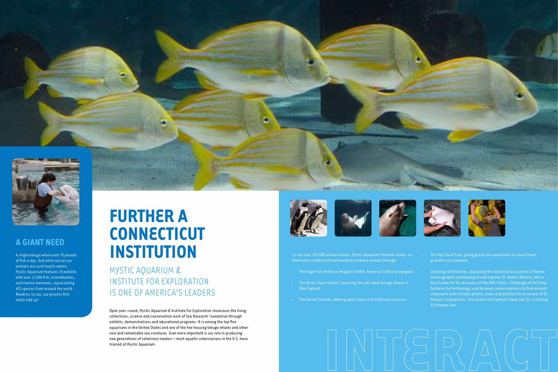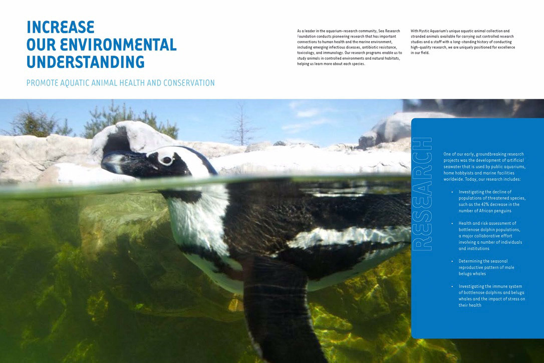 Modeled as true publications with compelling editorial content, the outreach of Mystic Aquarium stimulates community, academic, and professional support for this Connecticut institution.
